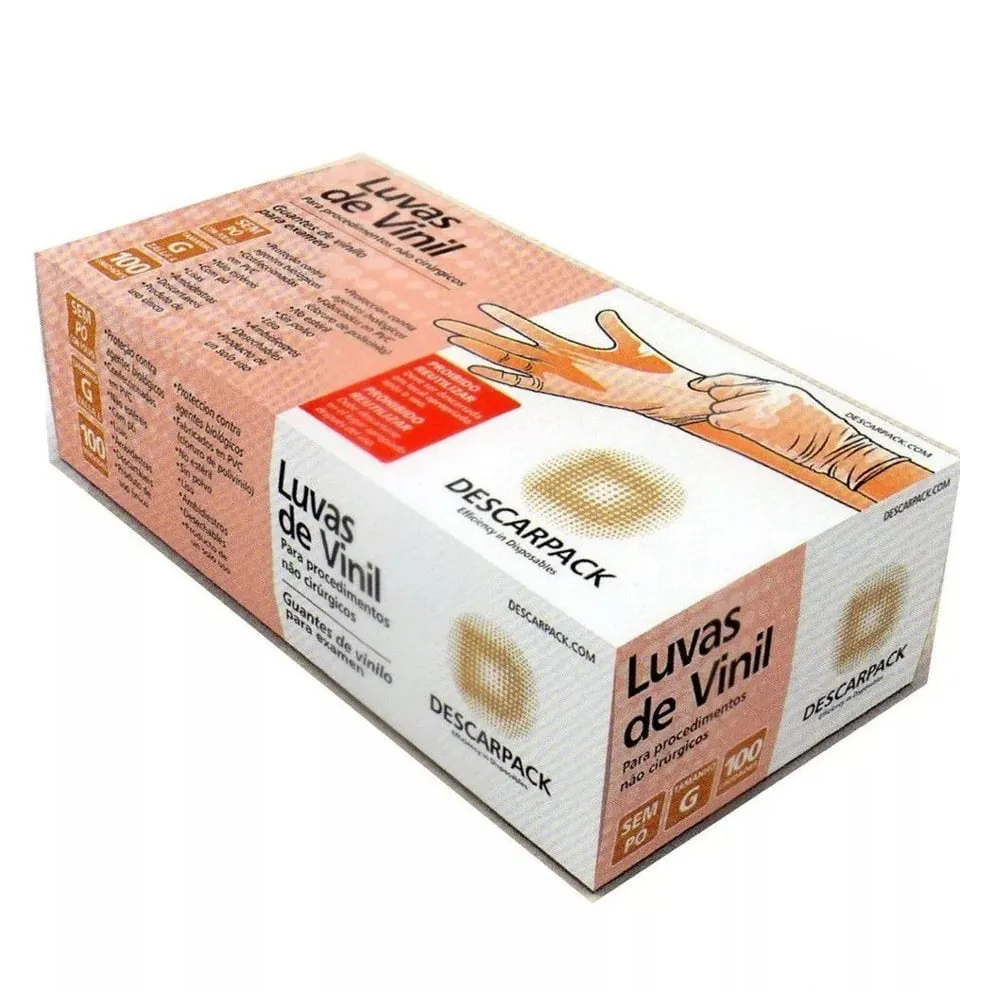 Luva Descartável - Vinil - sem Pó - 100un